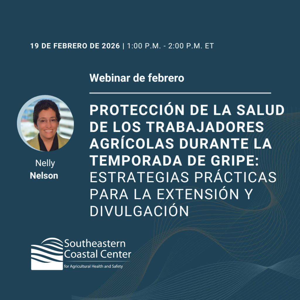 Los trabajadores agrícolas enfrentan desafíos únicos durante la temporada de gripe, entre los que se incluyen el acceso limitado a la atención médica y las barreras lingüísticas. Este webinar proporcionará a profesionales de extensión, operadores agrícolas y defensores comunitarios estrategias y recursos culturalmente relevantes para ayudar a audiencias hispanohablantes y del sector agrícola a mantenerse saludables durante la temporada de gripe y resfriados.